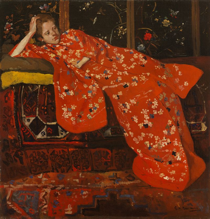 In another painting, Girl in Red Kimono, Geesje Kwak, 1893-95, Breitner represents the same subject.