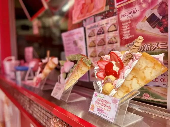 As the sun sets over the bustling streets of Harajuku, a queue begins to line up at the corner of a Japanese crêpe store, where hundreds of crêpes — displayed as in the way of Japanese fans — of all colors and tastes appeals to your senses, creating a striking visual symphony. There aren’t many places I’d rather be in the late afternoon to enjoy a traditional Japanese sweet.