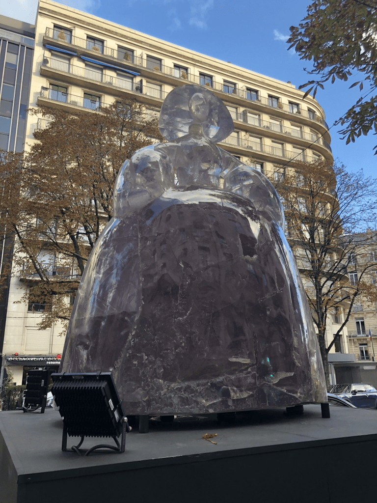 Valdés unveiled ten monumental sculptures, each soaring four meters high with a six-meter wingspan. The Monumental Égéries series showcased his deep fascination with materials, which he transformed in striking and expressive ways—some crafted from striated resin plates, others from iron, and several glowing in vivid shades of blue, pink, or red. The sculptures embodied various forms, including the Reina Mariana and Infanta Margarita series, inspired by Diego Velázquez’s iconic masterpiece Las Meninas. The latter reached an imposing height of two meters, evoking the presence of the Spanish Infanta, Margaret Theresa.