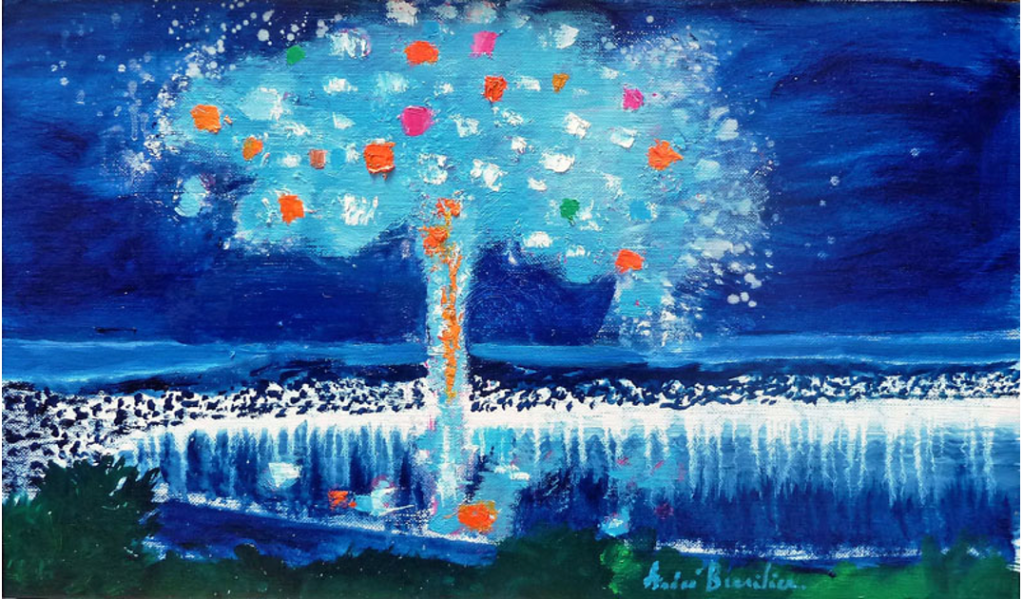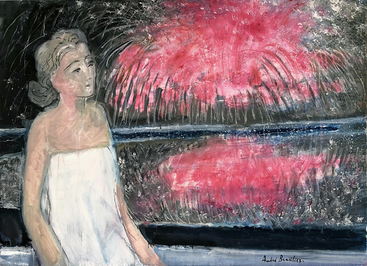 André Brasilier, Feux d’artifice à Juan Les Pins, 2023. 97 x 130 cm (38 × 51 in), Opera Gallery Paris.