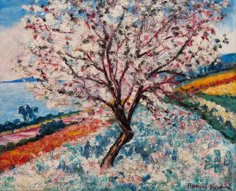 Francis Picabia, Arbre en fleurs, ca. 1938, Oil on cardboard. 46.1 × 55.2 cm (18 1/10 × 21 7/10 in), Helene Bailly Gallery.