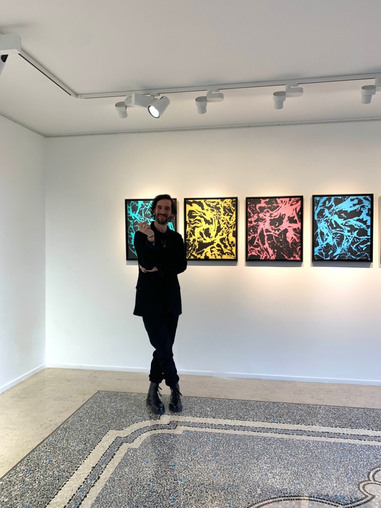 At Opera Gallery Paris this March, Julien Rubat’s latest works filled the space with layered fields of color and texture. The canvases, varied in scale but unified in process, resist clear representation. Yet, for many viewers, they evoke something familiar: maps of unseen landscapes, cellular structures, shifting geological formations. The paintings hover between the organic and the digital, the precise and the accidental, a tension that reflects the artist’s own trajectory.