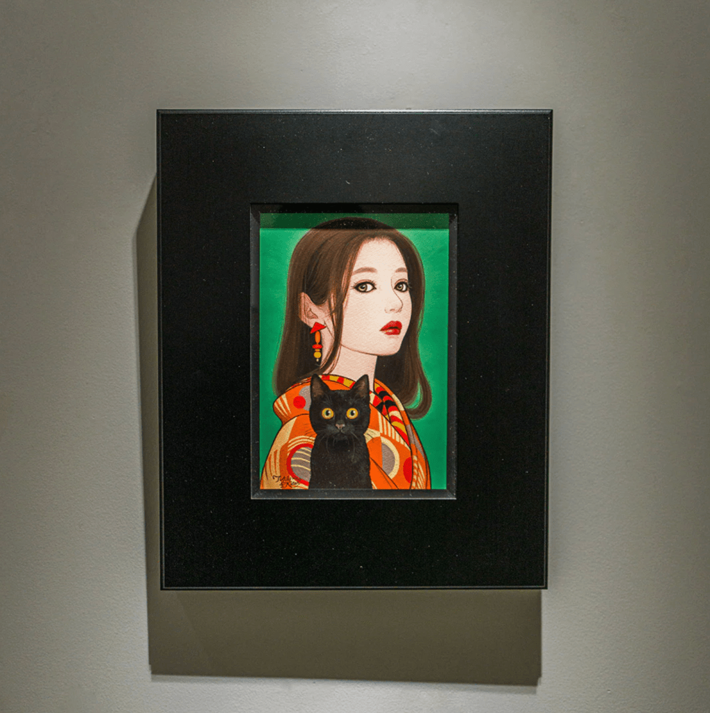 Her portraits recall the sleek, aspirational style of contemporary magazine covers for young women. Her portraits are neither “girls” nor “women” in the strict sense—labels the artist finds reductive—but they embody the ii onna, the “ideal woman”: graceful, composed, and alluring, yet beyond definition. By creating these multifaceted figures, she exposes the contradictions embedded in everyday beauty culture and shows that identity, like beauty, is never fixed but continually rewritten.