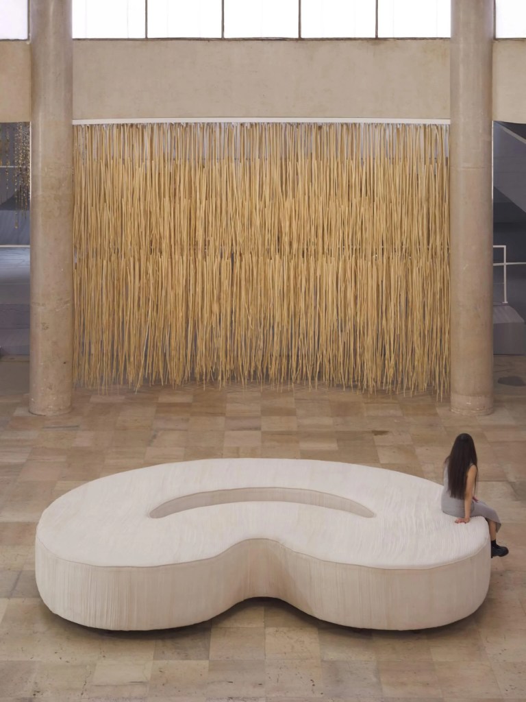 Among the works, Ode to the Margins, a sculptural work of bamboo and thread, draws on ceremonial crafts of the Ba-Na people, one of the first Indigenous communities in Vietnam to adopt Catholicism. These ritual wreaths once used in ancestral ceremonies have been repurposed as Christmas decorations in the wooden Saint Mary’s Cathedral of Kon Tum, becoming emblems of faith, continuity, and adaptation.