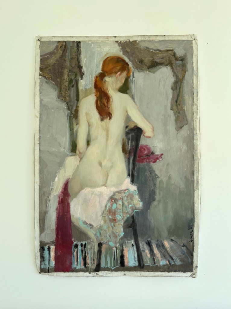 Lucy Evans is a Ukrainian-born artist from Kyiv. Fleeing to Paris in 2024 after the Russian Invasion, she paints in the countryside outside of Paris while attending Beaux Arts in Paris. There, she joined the studio of French artist Bruno Perramant. Her earlier work depicts moments of hope, inspiration, and bravery (see Brave, In Front of Mirror) while newer works delve into the subtleties of vulnerability, resilience, and inner transformation. Inspired by everyday life and nature, Evans creates works that reflect timeless dimensions of the human condition with both sensitivity and strength. Through her practice, she explores psychological states where emotion, memory, the unconscious and consciousness converge.